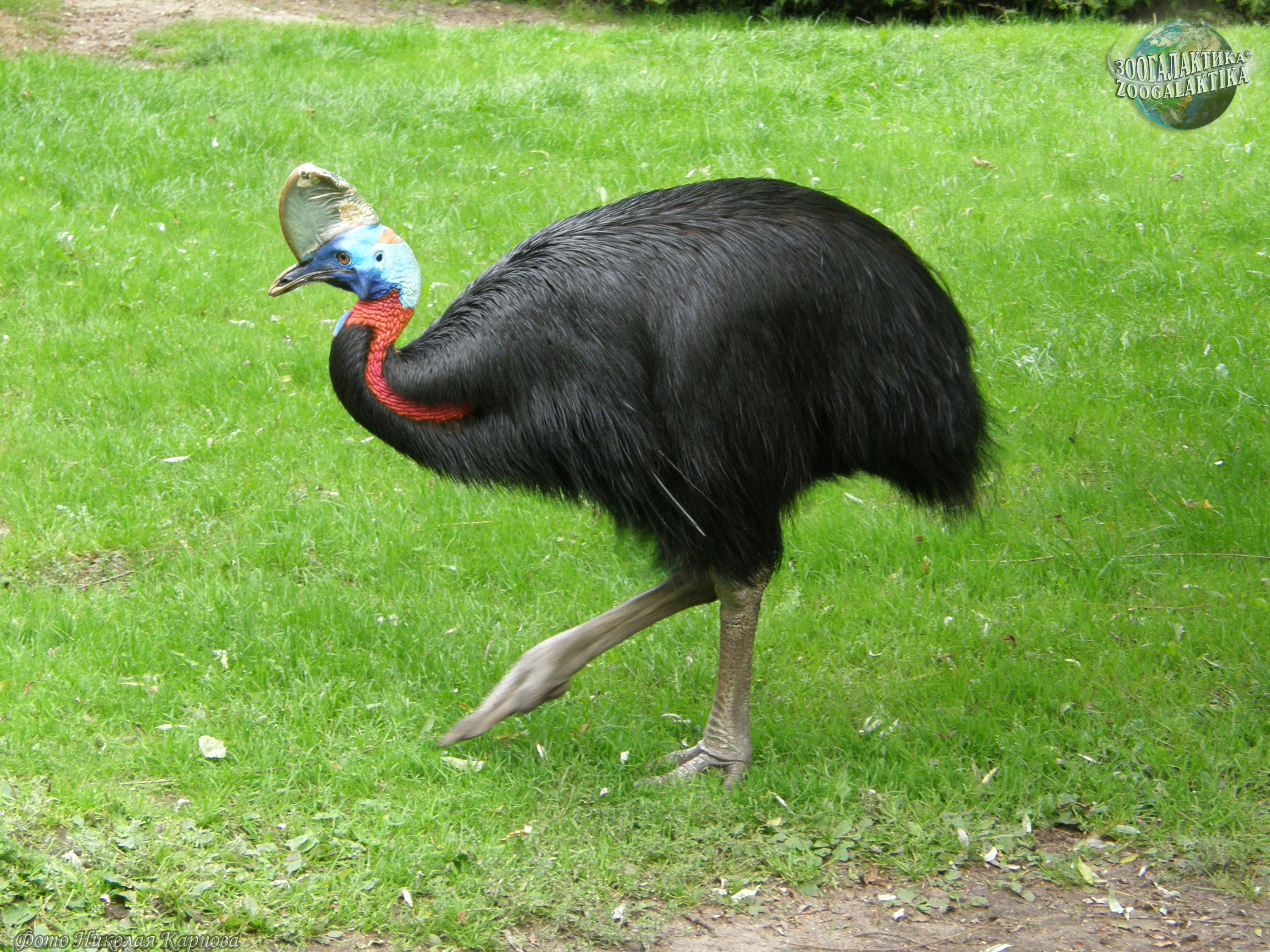 Казуары — крупные нелетающие птицы: взрослые особи достигают 1,5-1,8 м высоты и весят около 60 кг. По научной классификации казуары являются единственным родом, входящим в семейство казуаровых, которое наряду с семейством эму входит в отряд казуарообразных. В переводе с индонезийского языка их название переводится как «рогатая голова». И действительно, на голове у казуара имеется нарост, похожий на шлем, состоящий из рогового твёрдого материала губчатой структуры. Функции этого шлема до сих пор не ясны.