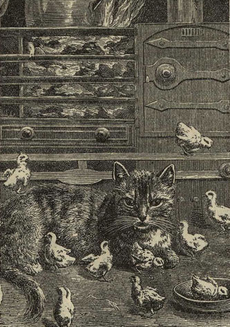 Два дня спустя, цыплят унесли, но кошка долго еще бродила около дома и никак не могла забыть свою пернатую компанию.