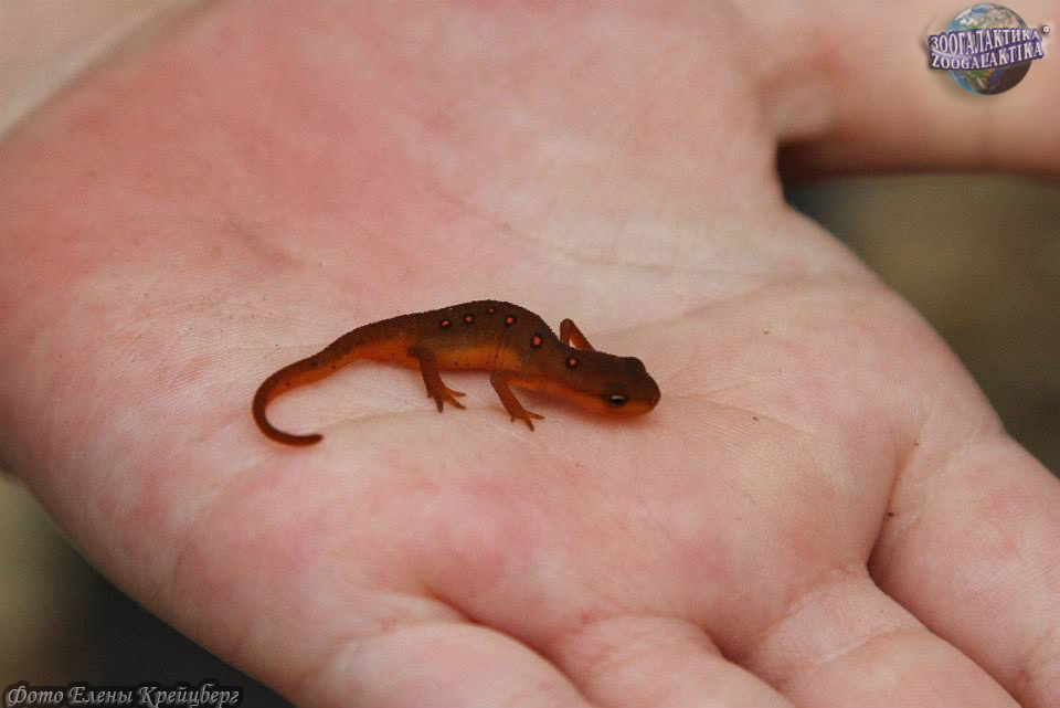 Зеленоватый, или восточноамериканский краснопятнистый тритон Notophthalmus viridescens
