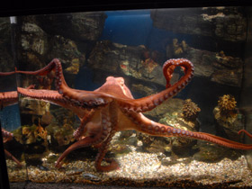 У осьминогов – сложное поведение, хорошо развиты память, чувство дома. Они легко обучаются. За сложность поведения их называют «приматами моря».