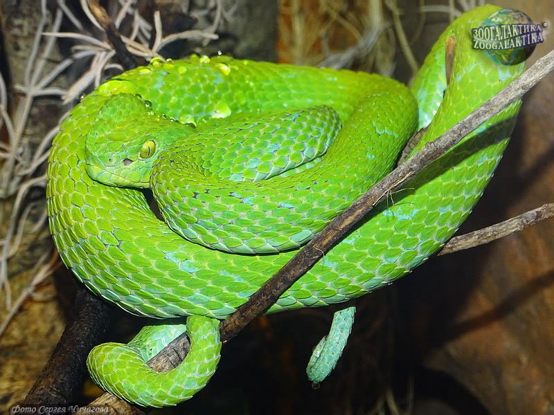 Рубиновоглазый зеленый гремучник (Cryptelytrops rubeus) - уязвимый вид