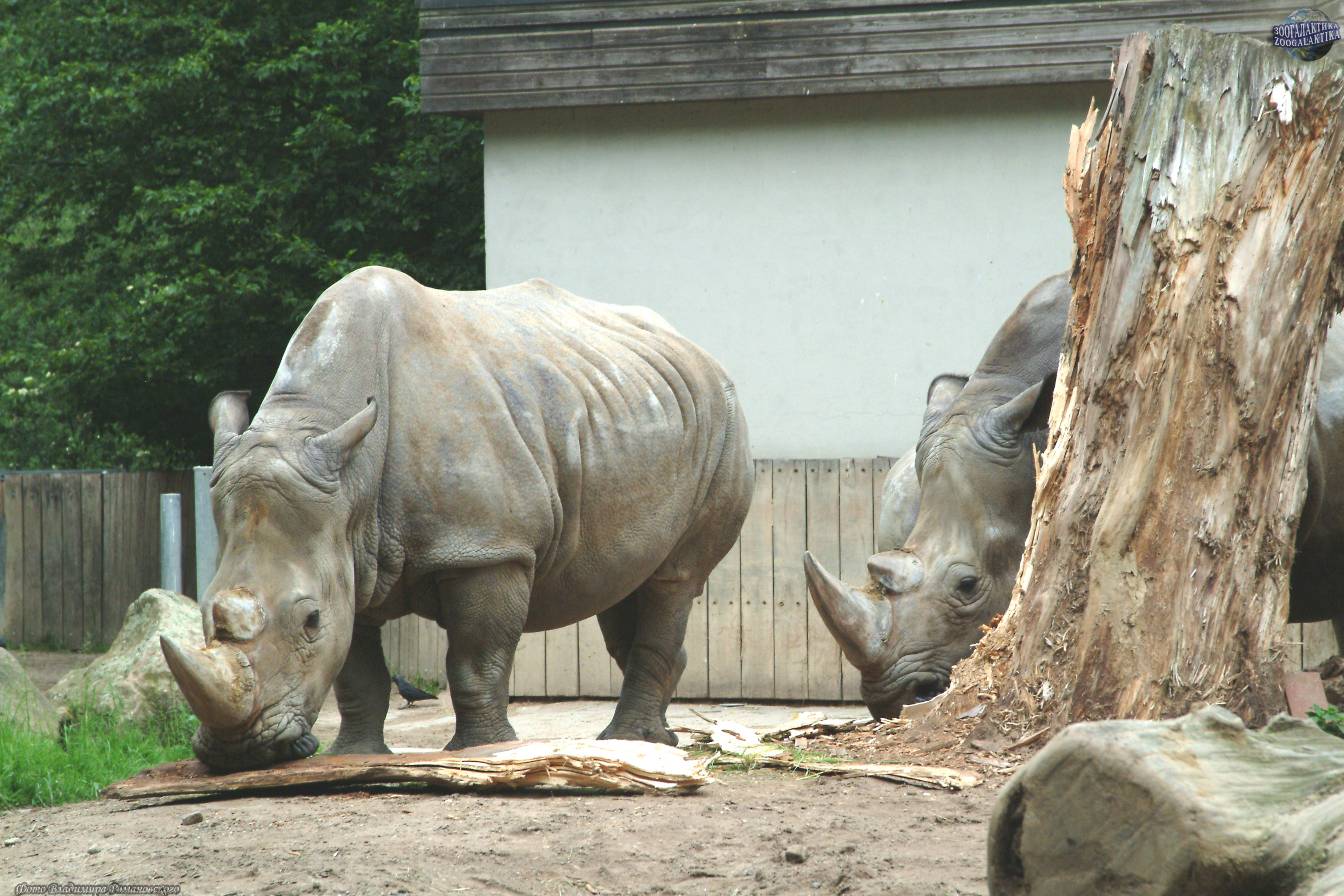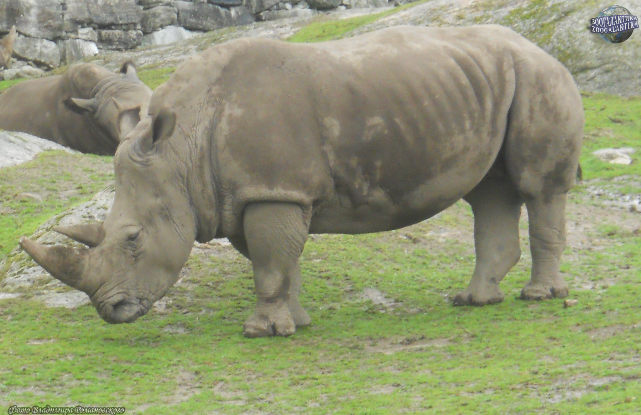 Белый носорог (Ceratotherium simum) - второе по величине сухопутное животное на планете после слона - весит 4-5 т при длине тела свыше 4 м. Главное его отличие от чёрного носорога вовсе не окраска (они оба темно-серые), а широкая плоская верхняя губа.