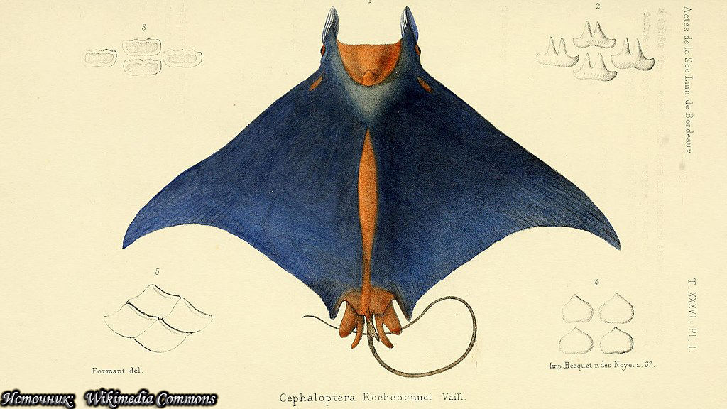 Малая гвинейская мобула Mobula rochebrunei 15412 Малая гвинейская мобула (Mobula rochebrunei) занесена в Красную книгу МСОП в статусе "уязвимый вид"